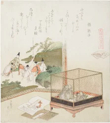 Wasserlose Muschel(Waterloze schelp Minasegai (title on object) Een vergelijking van Genroku gedichten en schelpen (series title) Genroku kasen kaiawase (series title on object))Katsushika Hokusai(print maker),Tsuru no Hinako,Haikai Utaba |