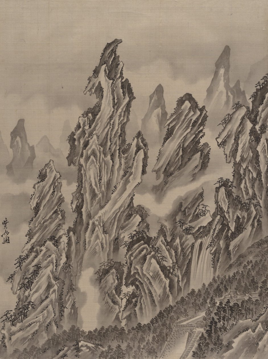 landschaft · künste · felsen · felsen · berg · berge · land · kunst · felsig · museum · geographie · japan · japanisch · position · jahrhundert · tinte · gewebe · seide · farbe · getroffen · metropolitanmuseum der kunst · das metropolitanmuseum der kunst · 19. jahrhundert · 19.jahrhundert · landscape · kawanabe kyosai · kyôsai · kawanabe · heritage art · ink and color on silk · ink and color on silk · kyosai · kawanabe · kawanabe gyosai · Heritage Art/Heritage Images |