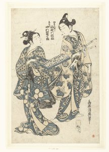 Zwei Geishas, die ein Shamisen und ein Liederbuch halten(Two Geisha Holding a Shamisen and a Song Book)Kitao Shigemasa |