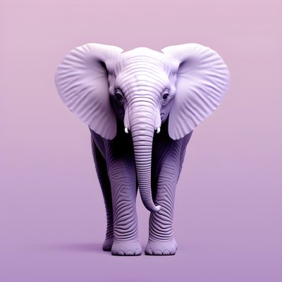 Dieses Bild wurde mit Hilfe von generativer KI erstellt. 2023 · Digital Art - Computermade 3d - midjourney - Photoshop · Bild ID: 1469470 hochauflösende, scharfe Details, aufwendige Hyperfeinlinierung in der Tradition der Banknotengravur durchgehend in Form von Konturlinien, Schraffuren, Kreuzschraffuren, Tüpfeln, Fotorealismus,8k 2 Ganzkörperporträt eines bezaubernden, zweifarbigen lavendelfarbenen Elefantenbabys, mit großen, schönen blauen Augen und lavendelfarbener Haut, das von einer Maus erschreckt wird::5 auf einem einfarbigen flachen lavendelfarbenen Hintergrund, Hyperminimalismus::2 schwarz, schwarze Tinte, schwarzer Hintergrund, dunkler Hintergrund, grau::-2