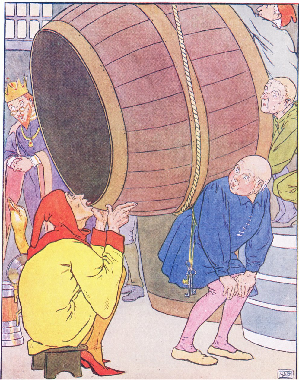 Der Mann setzte sich vor das große Fass und trank und trank(The man sat down in front of the great cask, and drank and drank )Leonard Leslie Brooke |