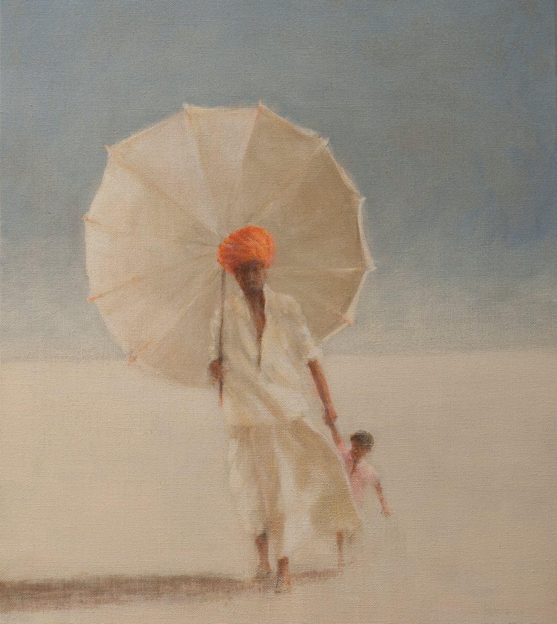 inder · turban · mann · vater · sohn · junge · händchenhalten · sonnenschirm · regenschirm · strand · sand · asiat · trockenheit · hitze · vaterschaft · malen · figürlich · aquarell · figur · Private Collection / Bridgeman Images |