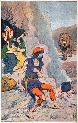 (Spanish Jews taking refuge in the Atlas Mountains in the 15th century, illustration from 'Histoire de France' by Michelet (1798-1874) c.1900 (colour litho))