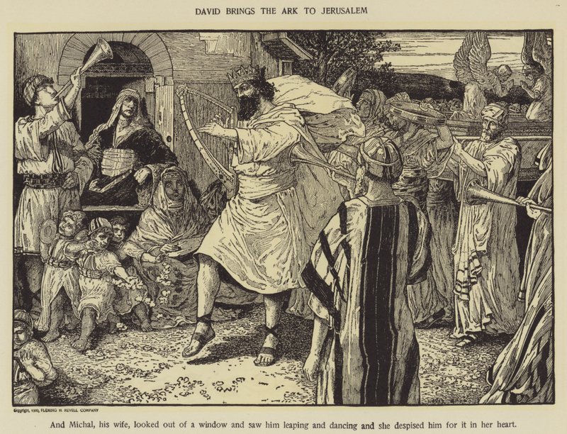 psalmen davids · bibel · könig · krieger · schäfer · dichter · gedichte · biblisch · david · bringt · arche · jerusalem · michal · ehefrau · fenster · springen · tanzen · verachtet · Herz · Private Collection / Bridgeman Images · / Look and Learn