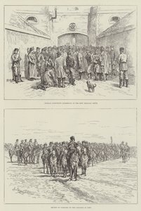 eulenhafte exzentrizität · eule · gefieder · eine erkältung · heftig · Übung · warm · beobachter · mann · besuch · nachbarn · stadt · dorf · kehrt zurück · bekleidet · sich ausruhen · gemeinschaft · folgen · untersuchen · rückkehr · gemütlich · eule · babys · initiiert · fütterung · flasche · maus · jagen · vögel · kleider · finden · belastung · suchen · schutz · winterlich · wetter · eulen · anthropomorph · humor · Private Collection / Bridgeman Images · / Look and Learn |