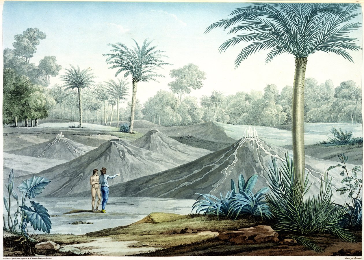 Vulkane in der Region Turbaco, aus 'Vues des Cordillieres et Monumens des Peuples Indigenes de l'Amerique' von Alexander de Humboldt und Aime Bonpland, graviert von Bouquet(Volcanoes in the region of Turbaco, from 'Vues des Cordillieres et Monumens des Peuples Indigenes de l'Amerique' by Alexander de Humboldt (1769-1859) and Aime Bonpland (1773-1858), engraved by Bouquet)Louis de Rieux |