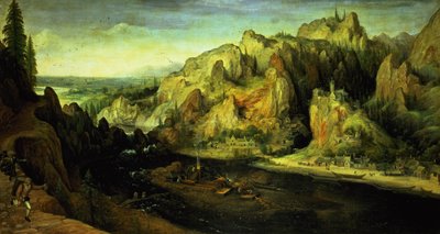 Gebirgslandschaft mit einem Überraschungsangriff, ca. 1585(Mountain Landscape with a surprise attack, c.1585)Lucas van Valckenborch |
