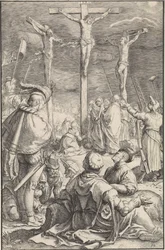 Kreuzigung (Die Passion)(Kruisiging De Passie (series title))Ludovicus Siceram(print maker),Lucas Vorsterman (I) (rejected attribution)(print maker),Hendrick Goltzius(after print by) |