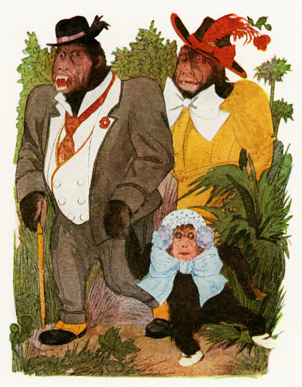 gorilla · baby · affe · eltern · mutter · vater · mutter · vater · kind · humor · humor · humorvoll · anthropomorph · illustration · kinder · promenade · familie · Private Collection / Bridgeman Images |