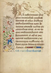 frau · lewis · 11 22v · blume · panel · akanthus · rosa · raupe · blumen · insekten · natur · blumen · motiv · muster · design · dekorativ · dekoration · beleuchtet · manuskript · erleuchtung · skript · text · kalligraphie · französisch · gebet · buch · miniatur · Free Library of Philadelphia / Bridgeman Images