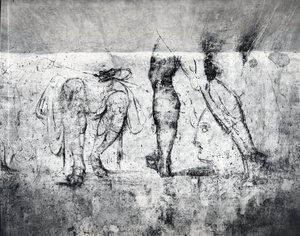 Wandzeichnung von zwei Figuren, ca. 1530(Wall drawing of two figures, c.1530 (charcoal on plaster))Michelangelo Buonarroti |