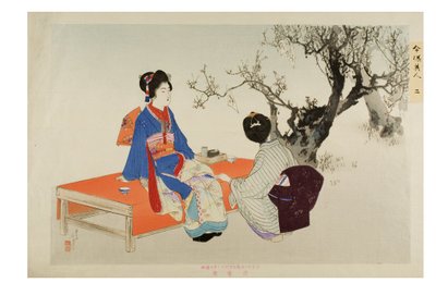 Pflaumenblüten betrachten. Aus der Serie Moderne Schönheiten, ca. 1897-1899(Looking at Plum Blossoms. From the series Modern Beauties, c.1897-1899 (woodblock print on paper))Mizuno Toshikata |