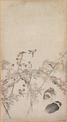 Welpen, Spatzen und Chrysanthemen(Puppies, Sparrows and Chrysanthemums)Nagasawa Rosetsu |