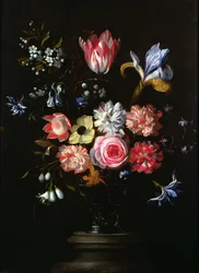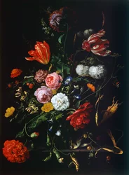 Eine Tulpe, Nelken und Prunkwinde in einer Glasvase, 17. Jahrhundert Blumen Ein Blumenstrauß in einer Kristallvase, 1662 Unbekanntes Bild Vanitas Stillleben mit Schädeln, Blumen, einer Perlmuschelschale, einer Blase und einem Strohhalm Ein Feston aus Rosen, Geißblatt, Lilien, Narzissen, Ringelblumen, eine Schachbrettblume Metallvase mit einem Blumenstrauß Blumen in einer Glasvase