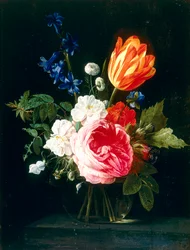 (A Tulip, Carnations, and Morning Glory in a Glass Vase, 17th century. )