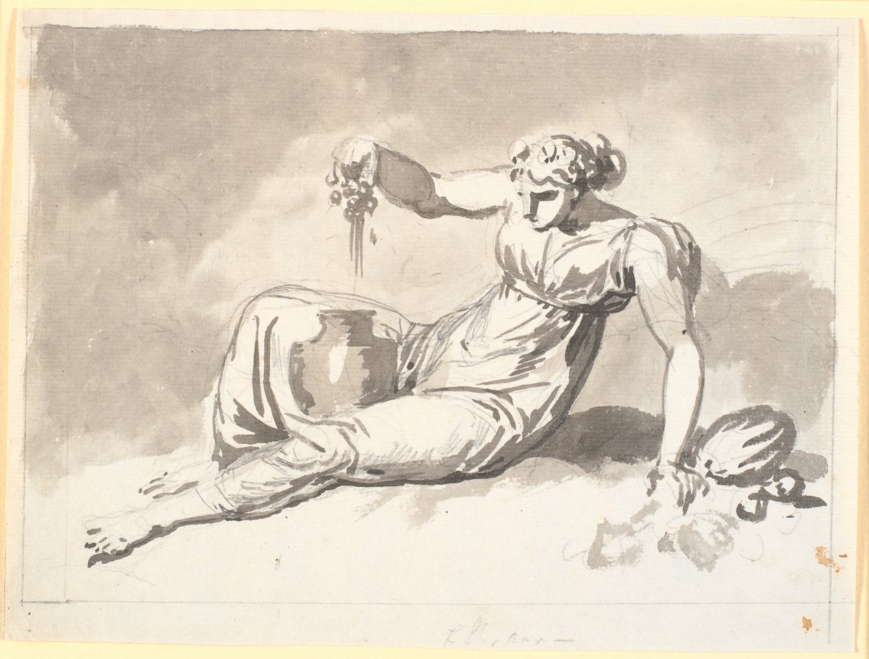 Herbst, eine sitzende Frau, die Trauben presst(Efteråret, en siddende kvinde, der presser druer)Nicolai Abildgaard |
