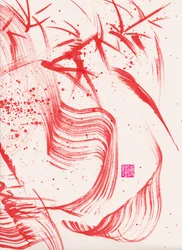 (Zen Red Bamboo Ink Abstraction 2, 2020 (acrylic on Xuan paper))