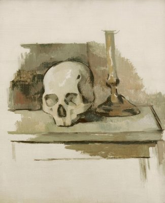 Stillleben mit Schädel und Kerzenhalter, um 1900 von Paul Cezanne. Verfügbar als Kunstdruck auf Leinwand, Fotopapier, Aquarellkarton, Naturpapier oder Japanpapier.