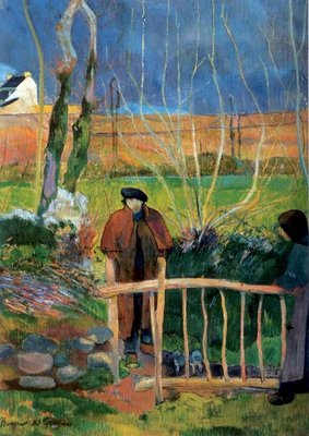 aussenseiter · bäuerin · begegnung · begrüssung · cape · ebene · entspannung · französische · kunst · gatter · kunst · künstler · künstlerleben · landleben · landschaft · landwirtschaft · mann · mantel · mode · portrait · schule · pont-aven · selbstbildnis · spaziergang · synthetismus · geographie · bretagne · frankreich · personen · paul · gauguin · technik · gemälde · malerei · hallo · Gauguin · Los Angeles, Armand Hammer Museum Of Art / akg-images