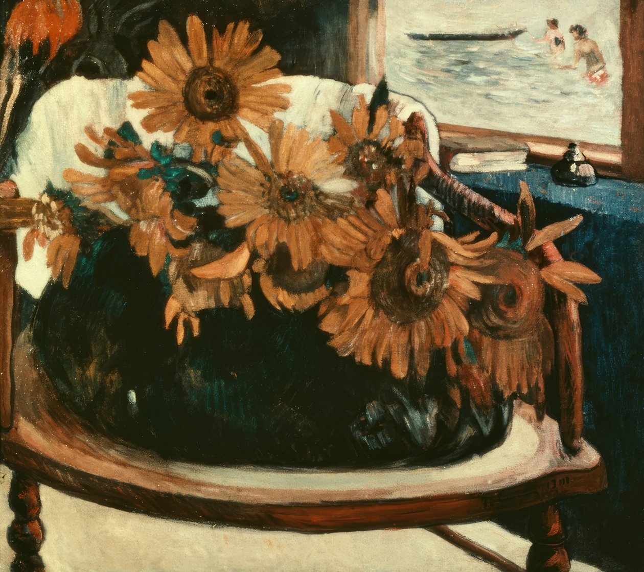 Sonnenblumen im Sessel I(Fleurs de tournesols dans un fauteuil I)Paul Gauguin |