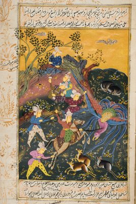 Jagdszene(Hunting Scene (opaque wc and gold on paper))Persian School |
