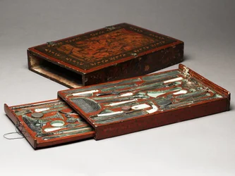 Werkzeugkasten, der die Heilige Familie darstellt, ca. 1830 Reisechirurgie- und Apothekenkit. 1640. Augsburg. Kunstgewerbe, Paris. Instrumentenkasten für Impfungen, ca. 1820 Werkzeugkasten, der die Heilige Familie darstellt, ca. 1830 Malkasten von John James Audubon (1785-1851) Chirurgische Instrumente, die von Doktor Antommarchi für die Obduktion von Kaiser Napoleon I (1769-1821) verwendet wurden Werkzeugkasten, der die Heilige Familie darstellt, ca. 1830 (Mischtechnik) Reise-Necessaire, ca. 1803 Aquarellfarbkasten des Künstlers, hergestellt von R. Ackermann, ca. 1820 Kiste mit geburtshilflichen Instrumenten (Holz & Metall) Kiste mit augenärztlichen Instrumenten (Holz & Metall) Kiste mit anatomischen Instrumenten (Holz & Metall) Chirurgische Instrumente Ein Paar Pistolen im Etui, angeblich im Besitz von Napoleon, Perin Le Page, ca. 1813-5 Tremanationskit Augenarzt-Instrumentenkoffer, hergestellt von Charrière aus Paris Reiseapotheke (Buche, Glas & Metall) Spritze erfunden von Charles-Gabriel Pravaz (1791-1853) im Jahr 1853 Napoleon III Case Necessaire de Bureau, ca. 1864-66 Malkasten Aquarellkasten des Künstlers, hergestellt von R. Ackermann, ca. 1820 Medizinkoffer mit Instrumenten für die Trepanation (Holz & Metall) Zeicheninstrumente verwendet von Isambard Kingdom Brunel Trepan, chirurgisches Werkzeug (Bohrer) mit Zubehör. 1768 Paris, Museum der Medizingeschichte Toilettenkoffer mit vergoldeten Silberbeschlägen, 1850er Jahre Eine schottische George III patentierte musikalische Spieluhr, ca. 1880 Holzkasse oder Schreibkasten mit Porträt von Peter des Großen Sohn, ca. 1695