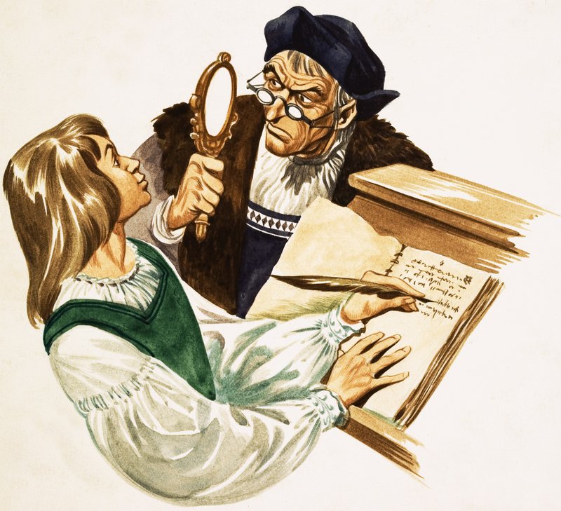 leonardo da vinci · da vinci · künstler · erfinder · klassenzimmer · schreiben · lehrer · spiegel · Private Collection / Bridgeman Images · / Look and Learn |