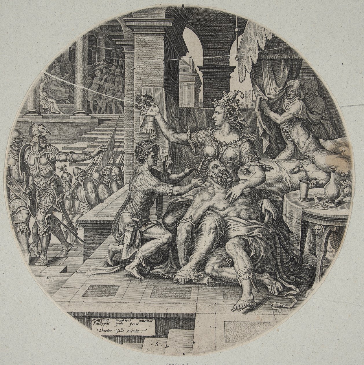 Samson und Delilah(Samson and Delilah)Philips Galle,Maarten van Heemskerck(after model by),Theodor Galle(publisher) |