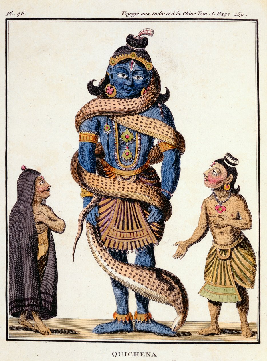 Krishna von der Kaliya-Schlange umschlungen, aus 'Voyage aux Indes et a la Chine' von Pierre Sonnerat, graviert von Poisson, veröffentlicht 1782(Krishna squeezed by the Kaliya Serpent, from 'Voyage aux Indes et a la Chine' by Pierre Sonnerat, engraved by Poisson, published 1782 )Pierre Sonnerat |