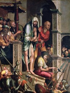 Ecce Homo Pontius Pilatus präsentiert Christus der Menge der Juden. Gemälde von Quentin Metsys (1466-1530) 16. Jahrhundert(Ecce Homo Pontius Pilate (Pontius Pilatius) presenting Christ to the crowd of Jews. painting by Quentin Metsys (1466-1530) (ec.flam.) 16th century Sun. 1,6x1,2 m Madrid, Musee du Prado)Quentin Massys or Metsys |