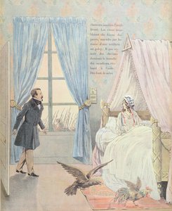 interieur · hund · buch · wahnsinn · mann · männer · schlafzimmer · goldschmied · hunde · kleidung · farbe · kinder · 19. jahrhundert · 19. jahrhundert · anziehen · poesie · gedicht · bücher · elegie · illustrationen · mann · farbe · mode · kinder buch · illustration · oliver · Kinder · Private Collection / Bridgeman Images