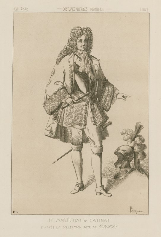 jahrhundert · armeen · arminen · rüstung · heer · kleidung · kommandant · kommandeure · kostüm · kostüme · zeichnung · zeichnungen · kleid · europa · europäisch · frankreich · französisch · helm · historisch · ikonographie · illustration · abbildungen · infanterie · führer · führer · männlich · mann · marechal · marschall · marschall von frankreich · militär · nicolas catinat · neunjähriger krieg · porträt · sozial · geschichte · ludwig xiv · krieg · spanische nachfolge · perücke · perücken · Private Collection / Bridgeman Images · / Look and Learn |