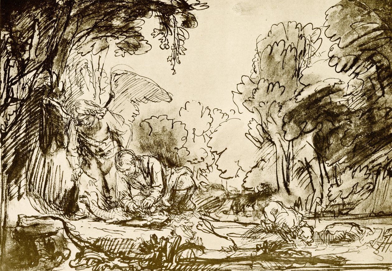 Tobias zerlegt den Fisch(Tobias gutted the fish)Rembrandt van Rijn |