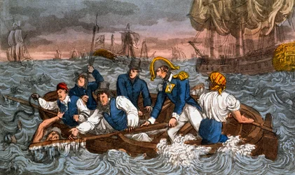 Nelson durch den Arm geschossen(Nelson shot through the arm (coloured engraving))Richard (after) Westall |