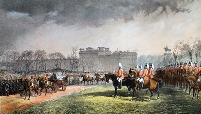 Hyde Park, die Prinzessin passiert die Linien der Freiwilligen, 7. März 1863 (Gravur)(Hyde Park, the Princess passing the lines of the volunteers, 7 March 1863 (engraving))Robert Dudley |