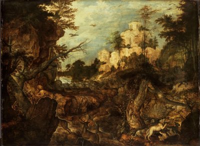 Wildschweinjagd in einer felsigen Landschaft(Wild boar hunt in a rocky landscape)Roelandt Jacobsz. Savery |
