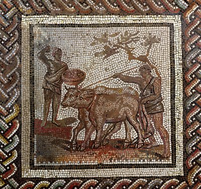 Pflügen und Säen(Plowing and sowing. Mosaic (mosaic))Roman Roman |
