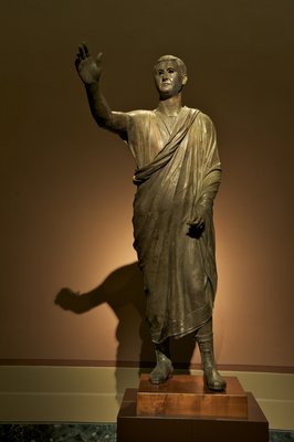 Bronzestatue von Aule Metele, Der Redner (Arringatore), aus Pila, Perugia, Italien, circa 80 v. Chr.(Bronze statue of Aule Metele, The Orator (Arringatore), from Pila, Perugia, Italy, circa 80 B.C.)Roman |
