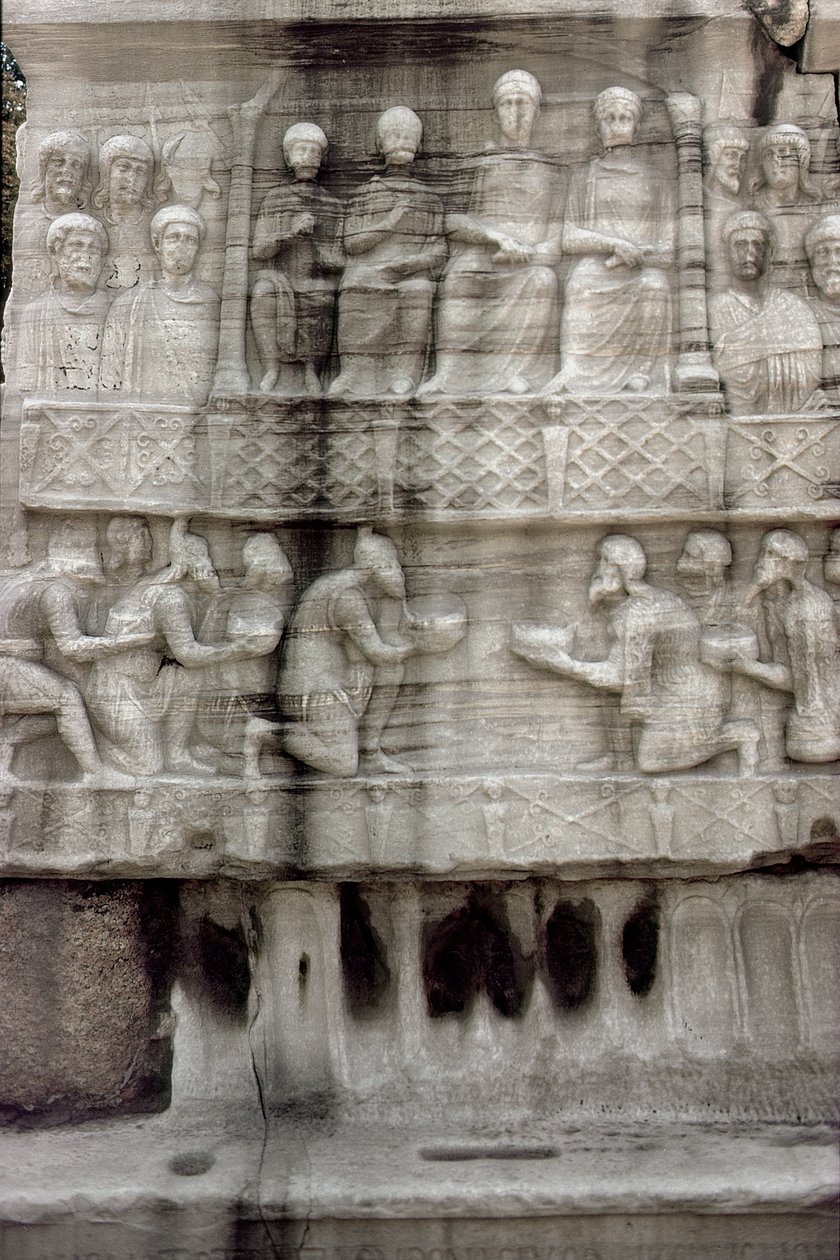 Relief am Sockel des Obelisken von Theodosius I., auch bekannt als Obelisk von Tuthmosis III., aus Karnak(Relief on the base of the Obelisk of Theodosius I (347-395) also known as the Obelisk of Tuthmosis III, from Karnak (marble))Roman |