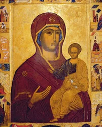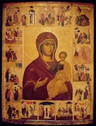 Jungfrau Hodegetria Ikone von Smolensk, ca. 1450(Virgin Hodegetria Icon of Smolensk, c.1450 (tempera on fabric, gesso, and wood))Russian School |