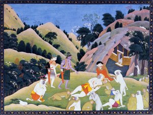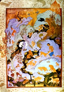 Vibhishana verneigt sich vor Rama Rama und die Affen belagern Lanka Der junge Krishna tötet den Dämon Vatsasura, der in der Gestalt eines Kalbs kam, ca. 1730-1740 Tod von Bali Die Affen haben beschlossen, sich am Ufer des südlichen Ozeans zu Tode zu hungern, anstatt sich dem Zorn ihres Königs zu stellen. Sie werden vom flügellosen Geier Sampati, dem Bruder des Geierkönigs Jatayu, gesehen Ohnmächtige Laila und Majnun - Basierend auf dem Khamsa des persischen Dichters Nizami Der musikalische Modus Asavari Seite aus den Geschichten eines Papageis Tuti-nama: Einundzwanzigste Nacht: Der Wolf und der Schakal..., ca. 1560 Krishna stiehlt die Kleider der Gopis, Folio aus einem Bhagavata Purana Die geheimnisvolle Insel, bevölkert von seltsamen Tieren. Miniatur aus den Maqamat von Abu Mohammed al-Kasim ibn Ali Hariri, illuminiert von Yahya Mahmud al-Wasiti Hanuman berichtet von Sitas Entdeckung, und Angada greift Dadhimukha in Madhuvana an Krishna ruft die Kühe, ca. 1780-1790 Krishna, Balarama und die Kuhhirten... aus einem verstreuten Bhagavata Purana... (1800-1825) Maharana Jagat Singh II jagt Tiger, 1749 Vishvamitra entdeckt die Einsiedelei des Weisen Vasishtha Krishna stiehlt die Kleider der Gopis, Folio aus einem Bhagavata Purana, ca. 1690-1700 Ağa Mirek - Mecnun in der Wüste Tuti-Nama Geschichten eines Papageis: Geschichte XXIX, Der Löwe kehrt in sein Territorium zurück und sieht, ca. 1560 Dadhimukha informiert Sugriva über den Vorfall in Madhuvana und übermittelt seinen Wunsch, Hanuman und Angada zu sehen Damen schießen von einem Pavillon, ca. 1810 Bd.1 Bl.10 Sita, die von Raksaskas in Lanka bewacht wird, betrachtet den von Hanuman gegebenen Ring Ein König verbringt seine Tage damit, arme Gazellen ohne Grund zu töten, später, in einem anderen Leben, ist er eine Gazelle und wird von einem Jäger getötet, Detail aus dem Swayambhu Purana, einem wichtigen buddhistischen heiligen Text in Nepal (Detail) von einem buddhistischen Manuskriptcover Layla und Majnun in der Wildnis mit Tieren, aus einem Khamsa (Quintett) von Amir Khusrau Dihlavi, ca. 1590-1600 Hanumān und Vibhīṣaṇa bringen den verwundeten Lakṣmaṇa zu Rāma, der ihn heilt Todi Ragini, ca. 1700 Damen auf einer Schaukel, Mitte des 18. Jahrhunderts Miniaturmalerei auf Papier, Ragini Guri, Nathdwara Schule Sugriva erzählt Rama, dass er gesehen hat, wie Sita von Ravana in einem Streitwagen entführt wurde, kämpfend und die Namen von Rama und Laksmana rufend. Als sie ihn unten sah, ließ sie ihre Juwelen und ein Obergewand fallen. Sugriva rennt zu einer Höhle.