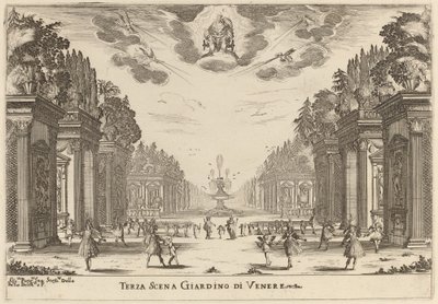 Terza Scena Giardins di Venere von Stefano della Bella. Verfügbar als Kunstdruck auf Leinwand, Fotopapier, Aquarellkarton, Naturpapier oder Japanpapier.