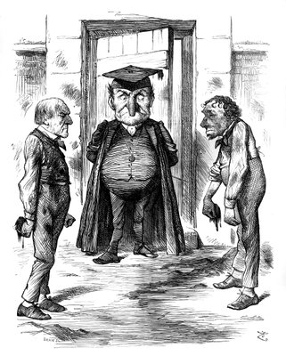 leute · kind · kinder · ausbildung · politik · lehrer · besetzung · zeitschrift · kleidung · britisch · englisch · kleid · schulkinder · premierminister · jahrhundert · großbritannien · unterricht · unterrichten sie · beruf · schulkind · frech · mörserbrett · konzept · durchschlag · mortarboard · karikatur · schüler · schüler · einfarbig · karikatur · politiker · stich · 19. jahrhundert · schwarzes u. weiß · schwarzes und weiß · 19.jahrhundert · satire · satirical · staatsmann · benjamin disraeli · punch or the london charivari · engraving · swain · lord · benjamin · disraeli · earl of beaconsfield · viscount hughendon of hughendon · dizzy · lord beaconsfield · beaconsfield · The Print Collector/Heritage Images