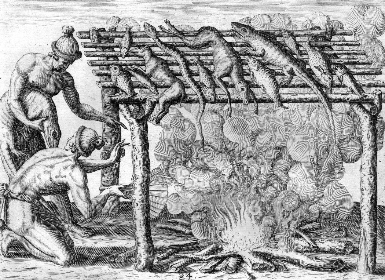 küche · buch · essen · schlange · reptil · tier · indianer · nordamerika · kÜche · verÖffentlichung · vereinigte staaten · entdeckung · feuer · feuer · florida · florida · franzÖsisch florida · franzÖsisch florida · rauch · indisch · reise · buch · native indisch · neue welt · nordamerika · essen · neue welt · protestantismus · protestantismus · schlange · timucua · stamm · tribu · reisen · / Bridgeman Images |