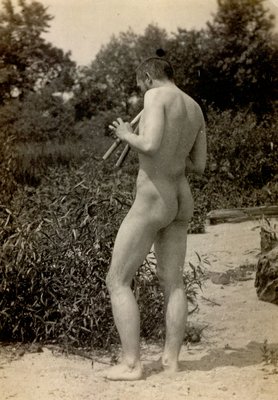diaulos · foto · fotografie · fotografie · fotografie · jahrgang · bild · 19. jahrhundert · 19. jahrhundert · amerikaner · mann · männer · mann · nackt · strand · strände · meer · küste · küste · draußen · rückansicht · aulos · musik · musik · hinten · ansicht · flöte · flöten · pfeife · pfeifen · klassik · Pose · Private Collection / Bridgeman Images
