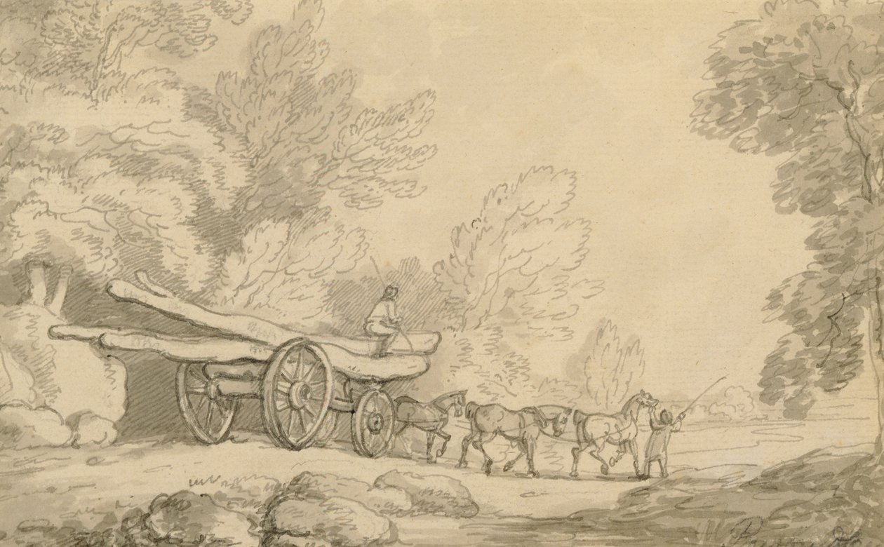 Ein Holzfuhrwerk, um 1790(A Timber Wagon, c.1790 (pen und ink with wash over graphite on paper))Thomas Rowlandson |