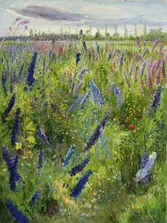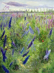 Rittersporn und aufgehende Sonne, 1991(Delphiniums and Emerging Sun, 1991)Timothy Easton |