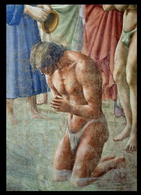 männlicher akt · demut · bekehrung · bekehrung · salbung · taufe · lendenschurz · Brancacci Chapel, Santa Maria del Carmine, Florence, Italy / Bridgeman Images