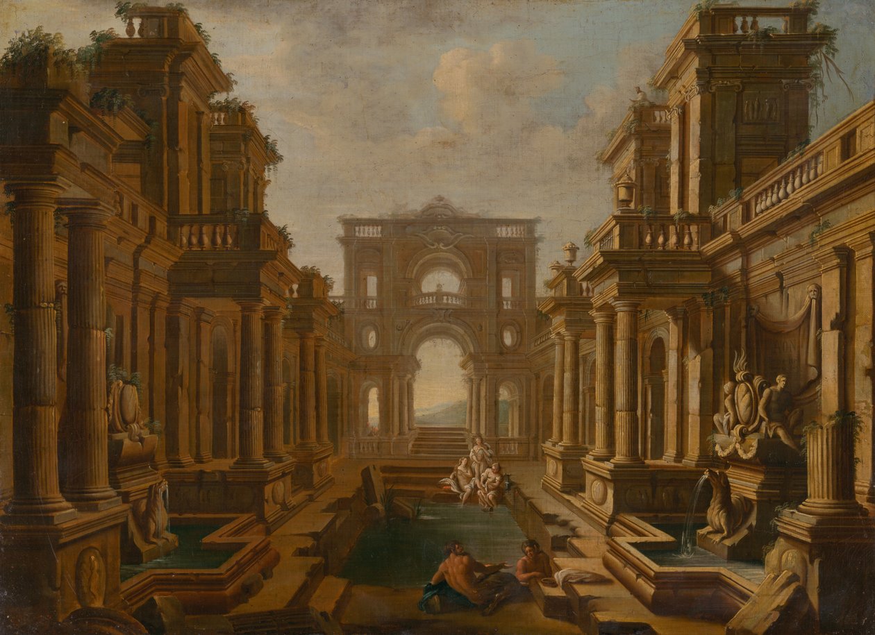 nacktheit · treppen · efeu · felsen · wasser · gras · skulpturen · wolken · säulen · torbogen |