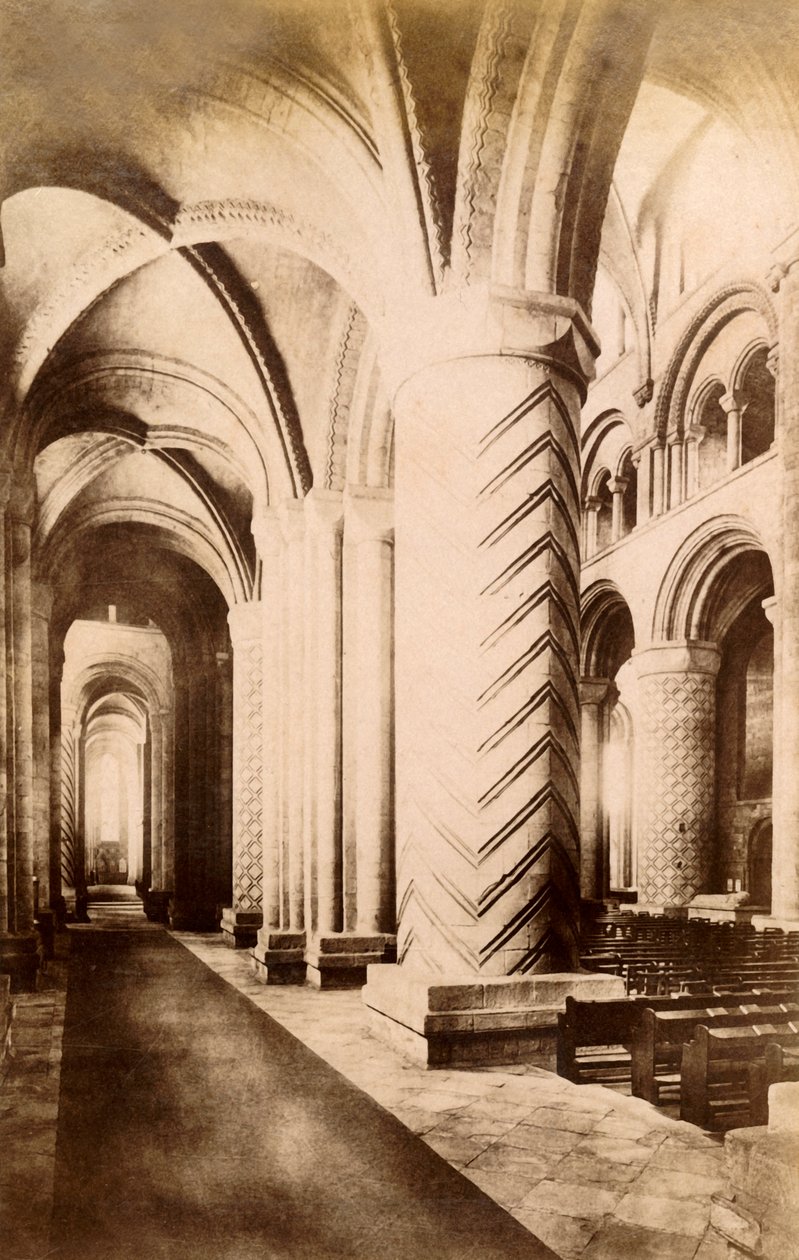 spielraum · gebäude · innen · fromm · architektur · religion · kathedrale · kirche · christentum · spalte · pfosten · pfosten · decke · jahrhundert · nach innen · wölbung · konzept · romanesque · touristische anziehung · welterbeaufstellungsort · architektonische eigenschaft · nave · 19. jahrhundert · vaulted decke · zuhause · unesco · normannisch · durham kathedrale · 19.jahrhundert · historisch · tourismus · photograph · unknown · The Print Collector/Heritage Images |